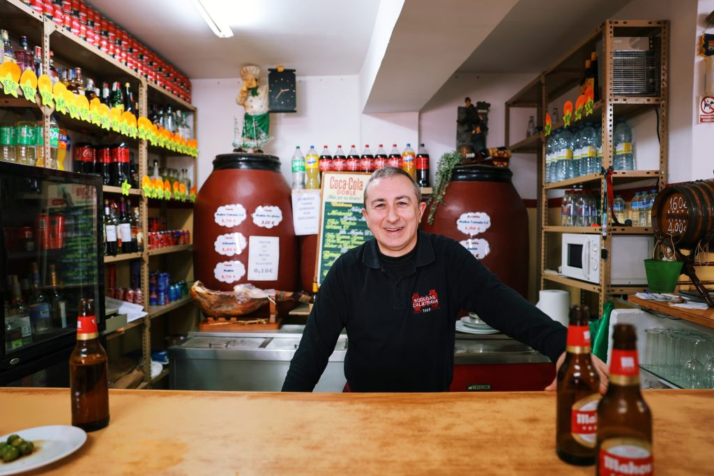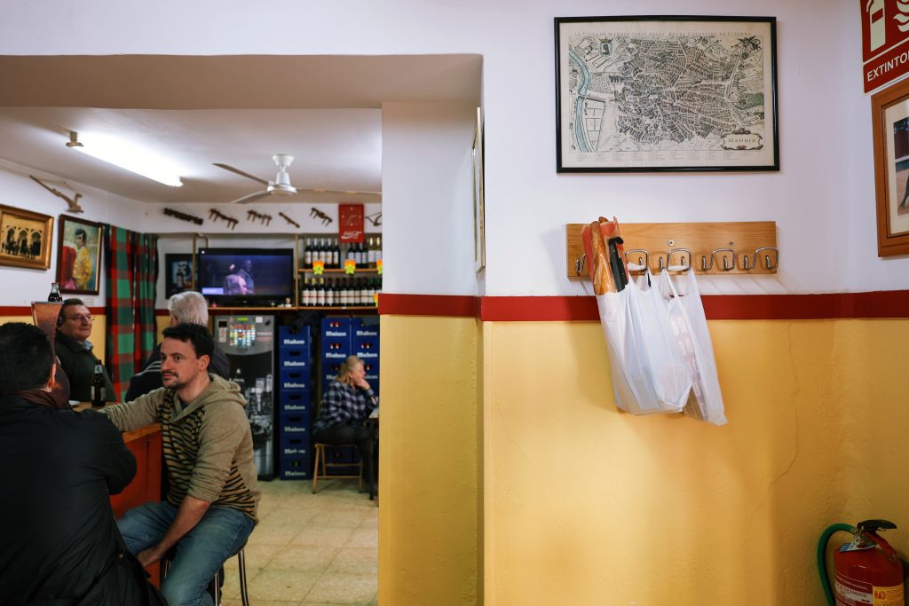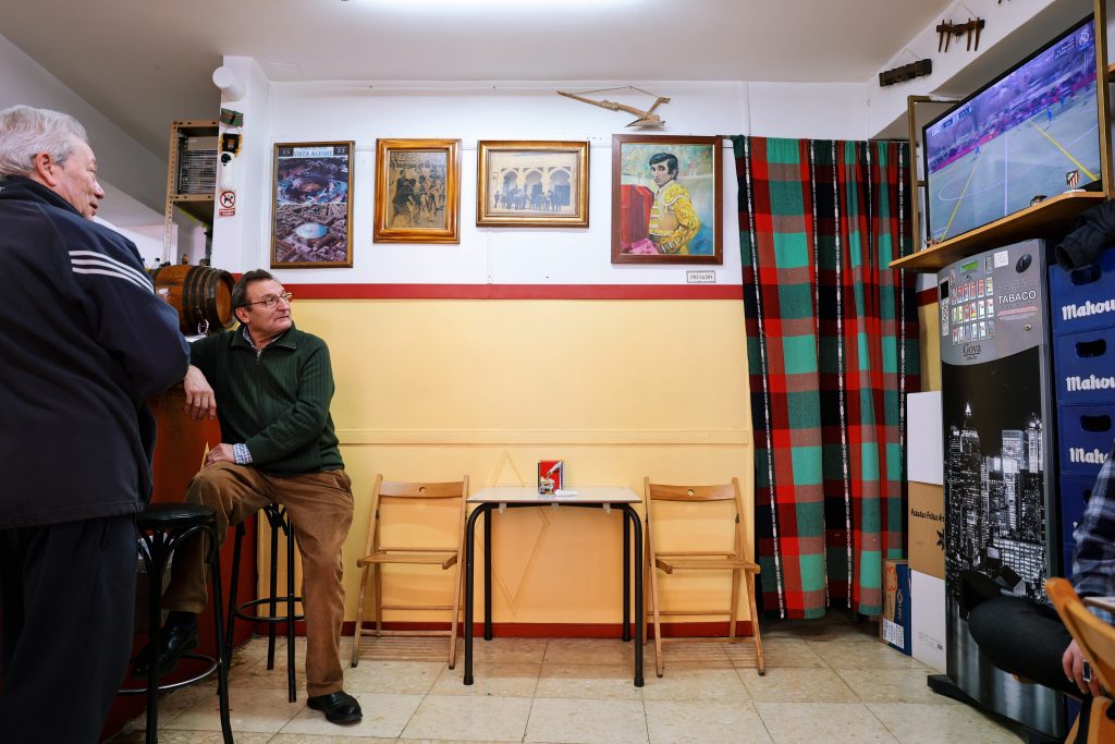 The bar drifts between one-to-one conversations among friends and a larger, collective discussion, with owner Jesús Gómez chairing with smiles and storytelling from behind his bar.
